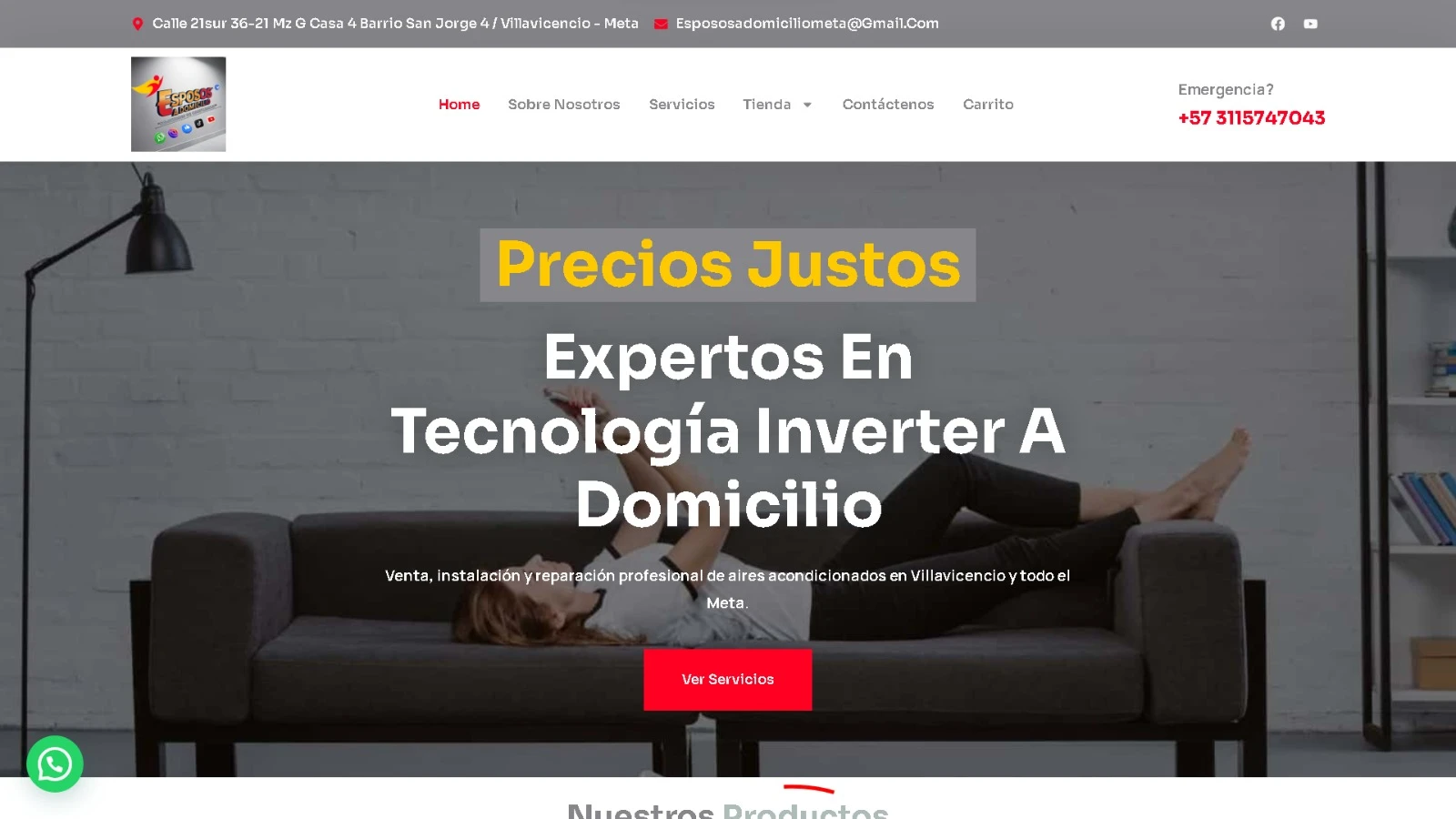 Página web y tienda online para mostrar los servicios y productos de una empresa experta en tecnología Inverter aplicada a aires acondicionados.